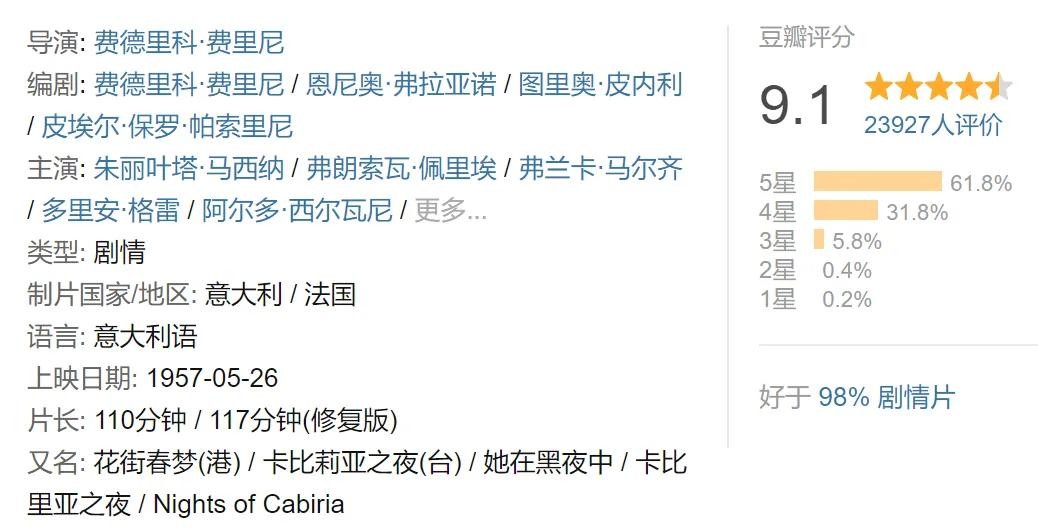 片中的主角卡比利亚,只是个在罗马街头的妓女