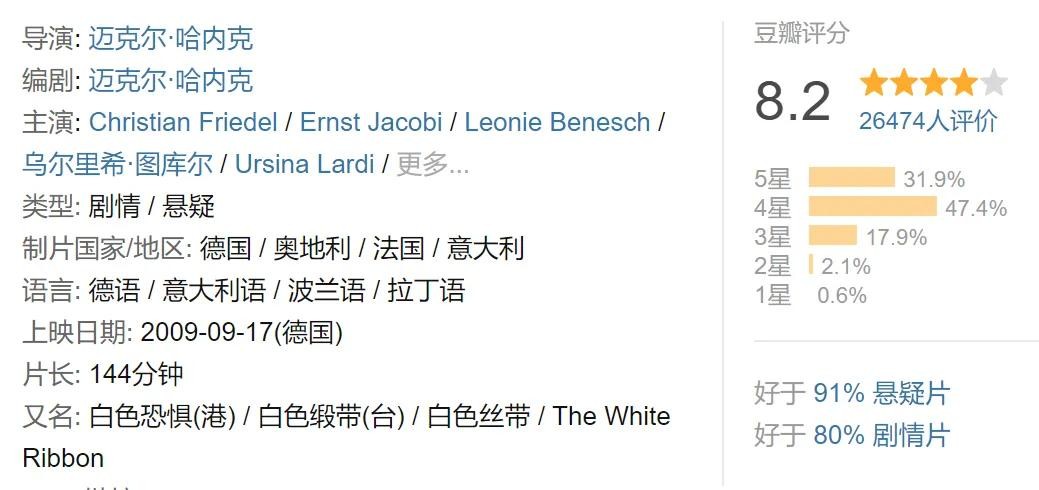 迈克尔·哈内克的这部获得奥斯卡和戛纳大奖的《白丝带》