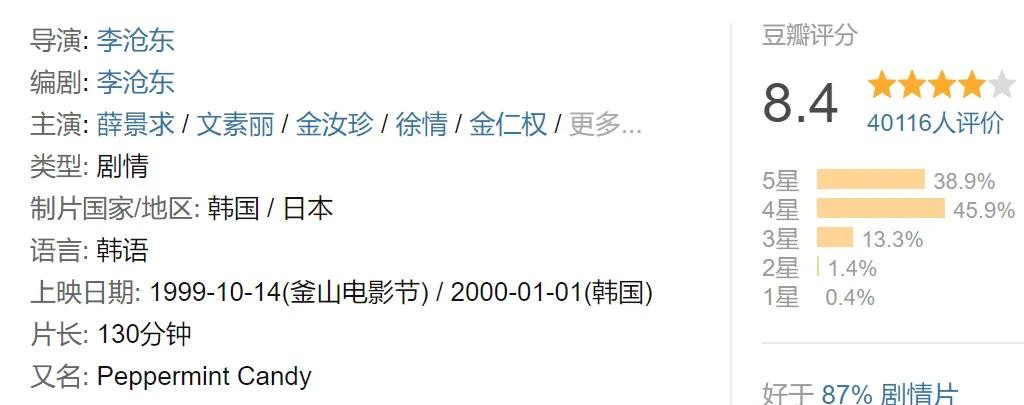 该片豆瓣评分9.1分,捧回了奥斯卡、戛纳金棕榈奖等大奖