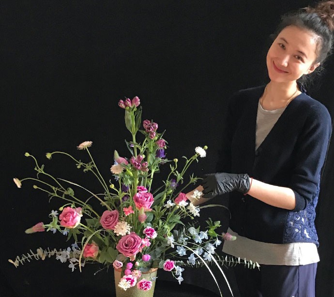 花艺可以说是很多女生都非常喜欢的兴趣爱好了,韩雯雯偶尔也会晒晒自己的花艺作品,花艺的穿搭就更加简约了,灰色的T恤搭配深色的针织开衫,下半身搭配灰色长裤,一看就非常居家的那种感觉,不过整体的版型很松弛有度,既不紧身,又不会过于宽松,扎着丸子头,换身都散发着知性淡雅的气质。