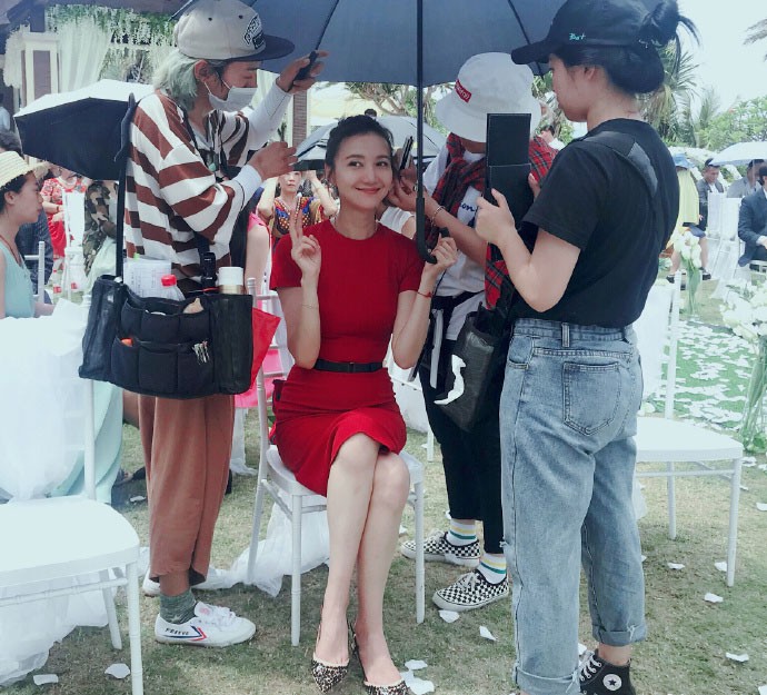 韩雯雯的气质还算是不错的,一条红色的连衣裙,也是非常简单设计,基本没有多余的设计,都说越简单的单品其实是最难穿的,搭配一条红色腰带,衬托得整个人面色红润。