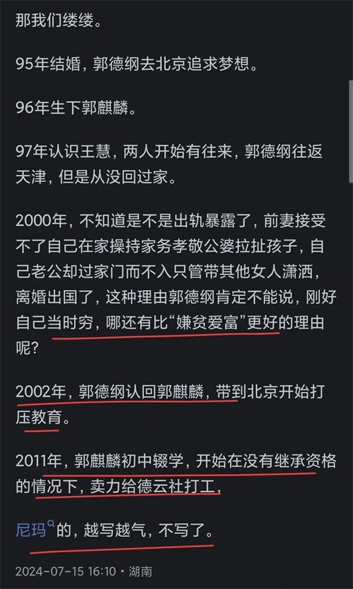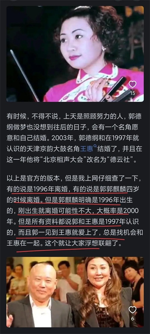 郭德纲的事业在那几年已经开始起步,忙碌的他可能无暇顾及家庭,前妻的孤独和期待也就无人关心。