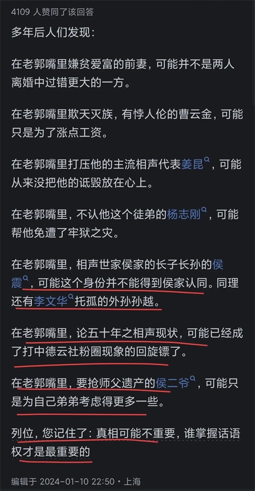 这个事情本来就扑朔迷离。有人说,郭德纲的忙碌和压力,让他在外寻求别的慰藉;也有人说,前妻只是单方面的猜忌和怀疑。