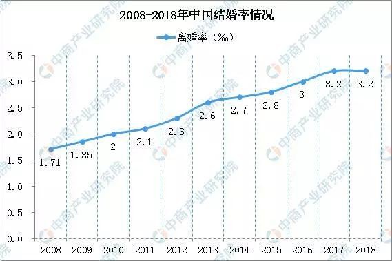 近十多年来,我国的离婚率也在持续攀升。民政部公布的数据显示,从2003年起,我国离婚率连续15年上涨,由1987年的0.55‰上升为2017年的3.2‰。2018年离婚率继续保持3.2‰。