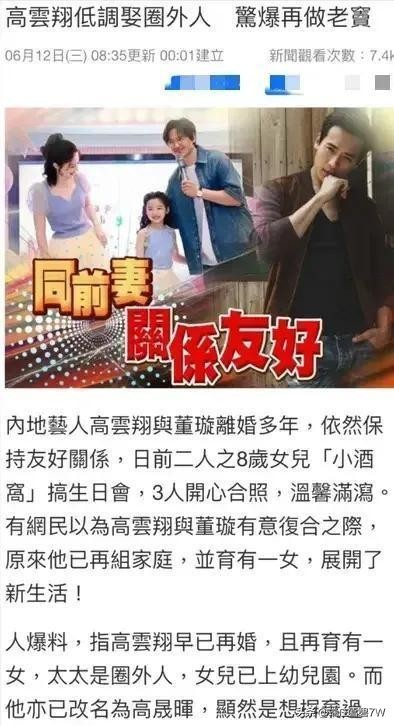 大瓜!刚刚!高云翔被曝已再婚,并且育有一女!现任妻子是圈外人