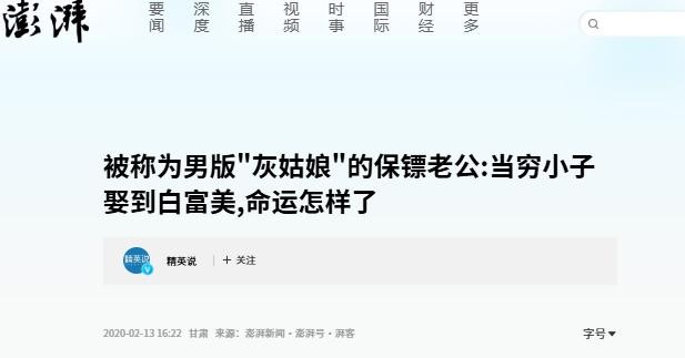 被称为男版"灰姑娘"的保镖老公:当穷小子娶到白富美,命运怎样了 澎湃新闻