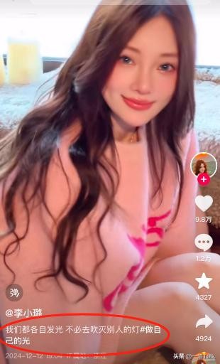 在下一条视频里,也是表示了现在她的心态“我们都各自发光,不必去吹灭别人的灯”。