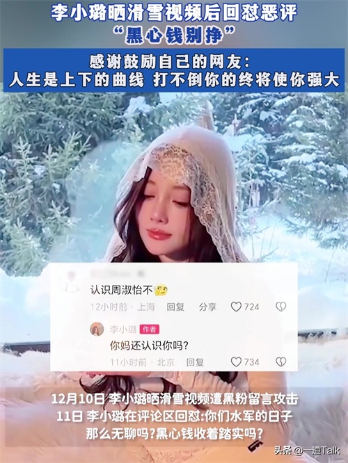[1].官方媒体江南都市报《女演员李小璐晒滑雪视频,网友评论狂刷周淑仪,李小璐正面回怼:你们水军的日子那么无聊吗?》2024.12.12