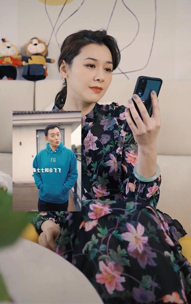 只见甄妮举着手机瘪起嘴,假装生气黄海冰说自己喜欢朱七七、白飞飞,最爱沈眉庄。