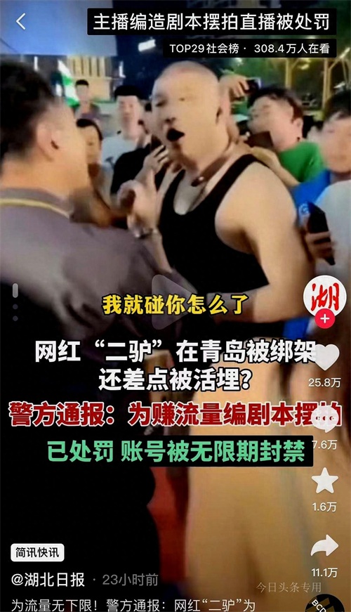 4000多万粉丝身价数亿元网红“二驴”被封,直播剧本被网友揭开