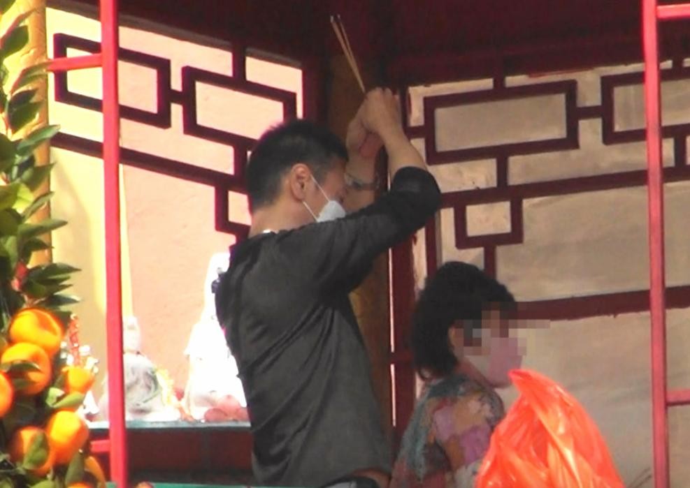 为了尊重场合,陶大宇到达龙母庙后,表情变得严肃。他拿出事前准备好的东西,然后闭着双眼,对着龙母祈福。祈福完毕后,他买了两样东西就离开了。