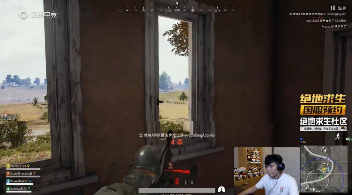 一路激烈交火,陈赫四人打到了决赛圈。由于捡了之前的空投,此时的陈赫身穿吉利服秀起了AWM阻击枪枪法。在不断的爆头中,陈赫首局游戏成功6杀吃鸡。按照之前官方给出的活动,本次吃鸡也在直播间送出iphoneX一部。