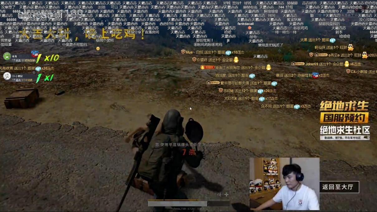 到了决赛圈,发现旁边出现了一个裸体的敌人。看到敌人拿着平底锅,陈赫决定来一个平底锅对决!最终在一锅爆头下,第二局吃鸡成功!(村长看到这忍不住发送了生平第一条弹幕表达心中的激动!)