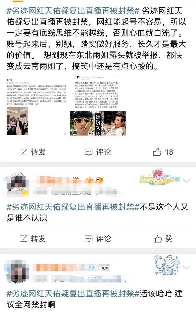 千万级粉丝劣迹网红天佑,复出直播为何再度被封禁?