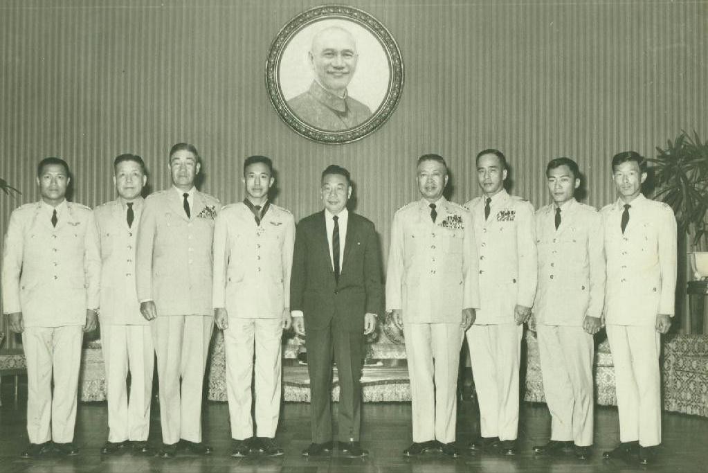 蒋经国和黑猫中队飞行员合照
