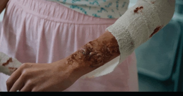 结果,她的胳膊大面积溃烂。