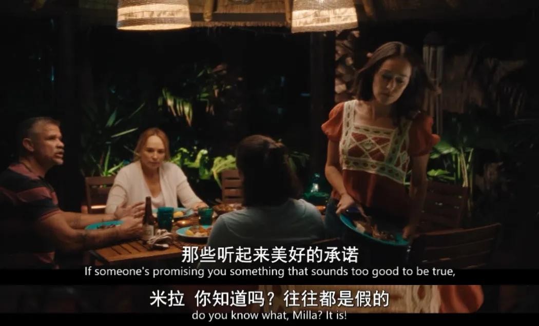 剧中,一位父亲提醒女儿,「那些听起来美好的承诺,往往都是假的。」
