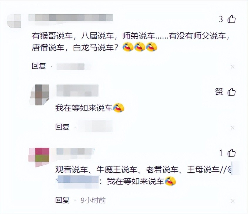 看到这接二连三的八卦,网友忍不住调侃:“有猴哥说车,八戒说车,师弟说车……有没有师父说车,唐僧说车,白龙马说车?”