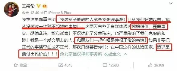 不仅如此,王岳伦还假惺惺补刀:“祝福李湘和她的意中人白头偕老!”