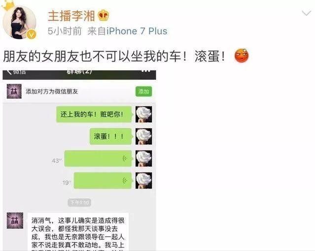 但是要说最生气的,那绝对还是王岳伦的妻子——李湘,她直接微博开炮:“朋友的女朋友也不能坐我的车!滚蛋!”