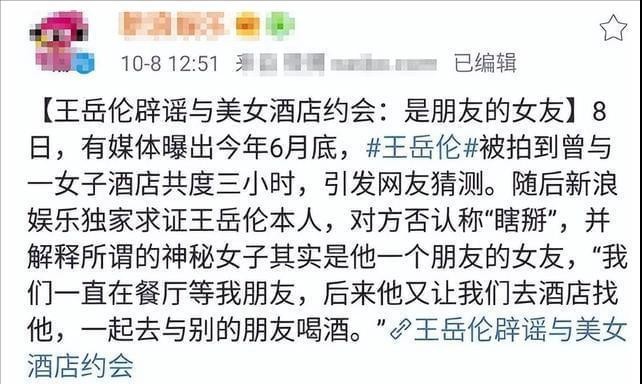 不得不说,王岳伦这撒谎真是不带打草稿的,他这“朋友”得多心大,让女友和已婚男酒店私会?
