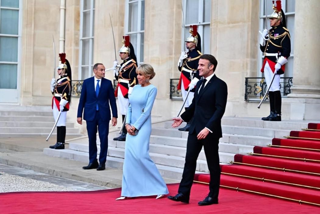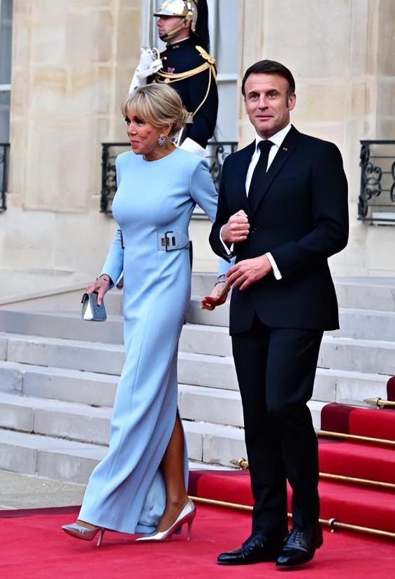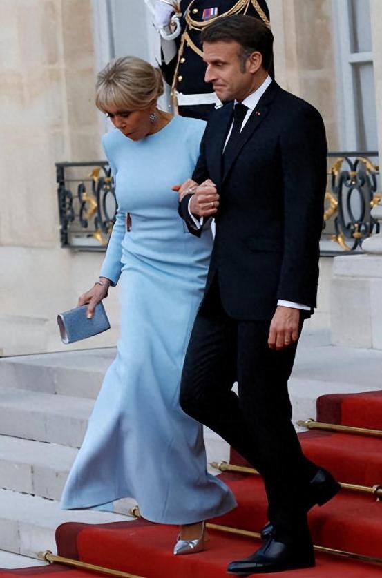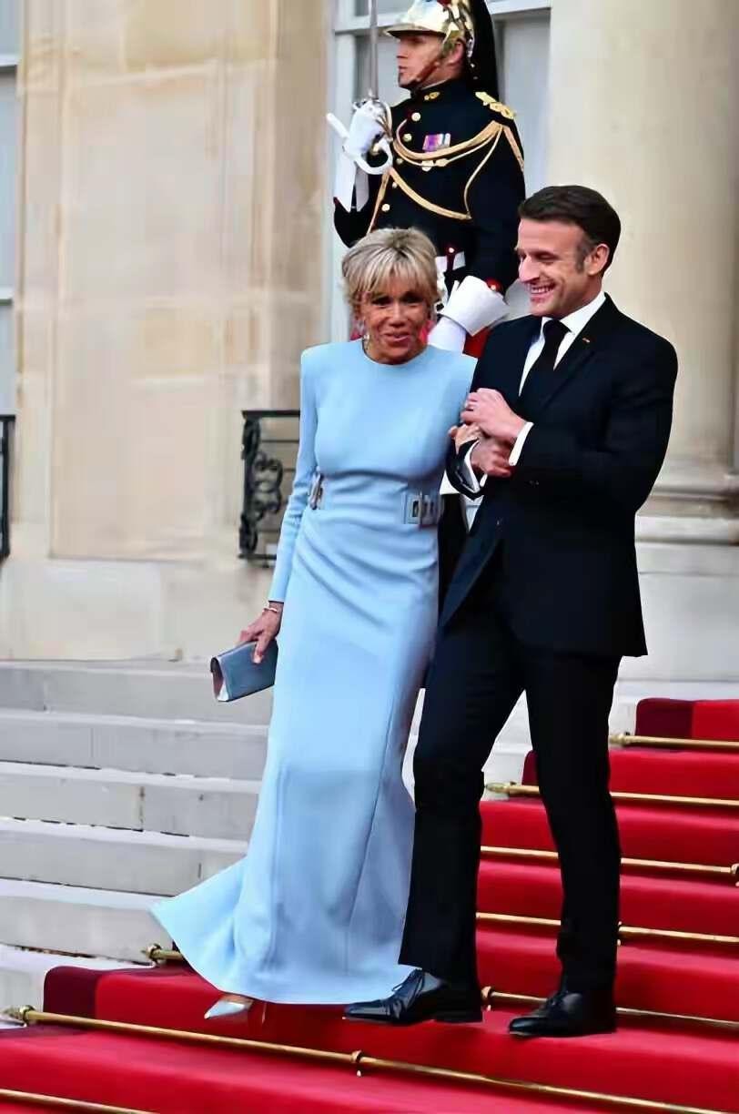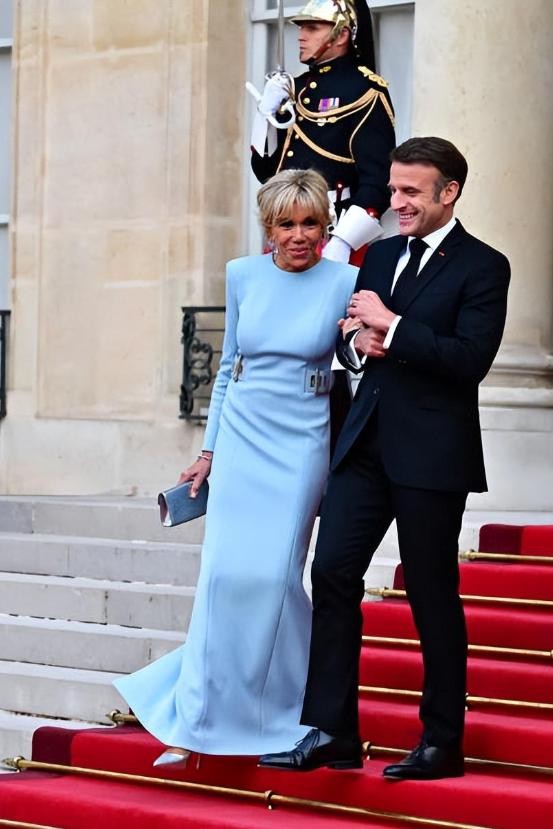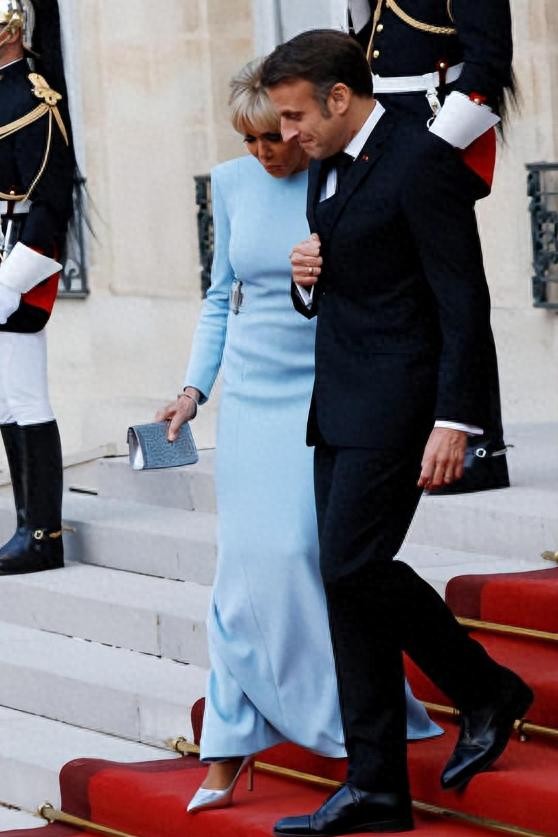 她这次身穿一袭定制的华美礼服,优雅地走在迎宾的红毯上,希望展现出与丈夫马克龙的恩爱,但命运开了个小玩笑。