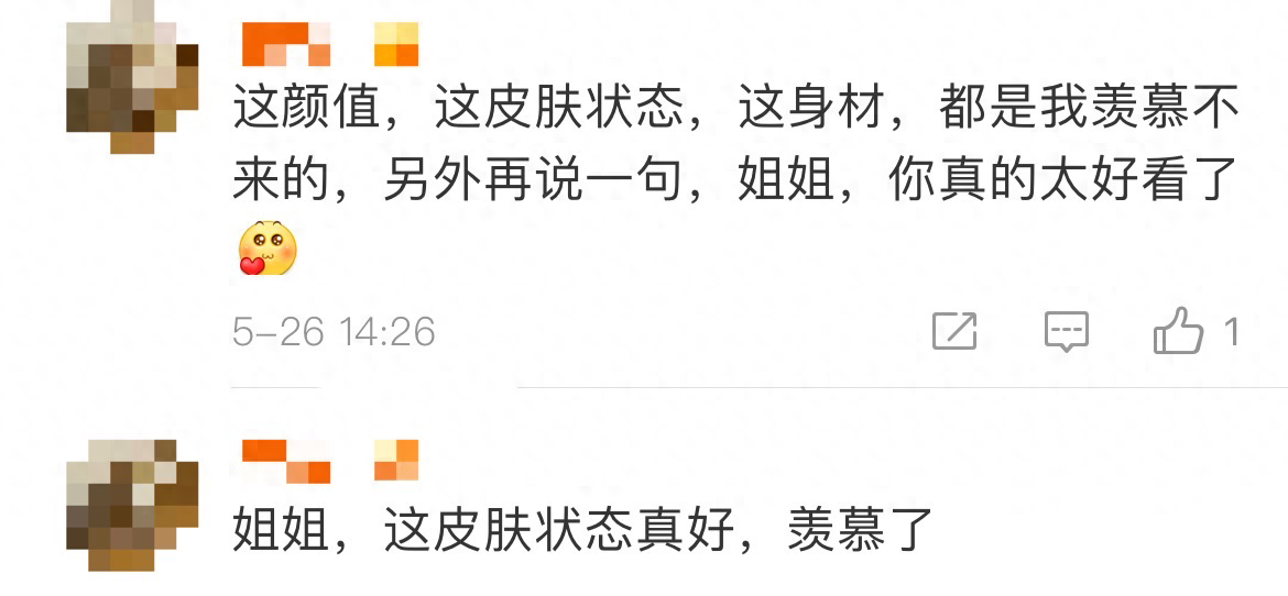 有网友评论道“这颜值,这皮肤状态,这身材,都是我羡慕不来的,另外再说一句,姐姐,你真的太好看了”“姐姐,这皮肤状态真好,羡慕了”。