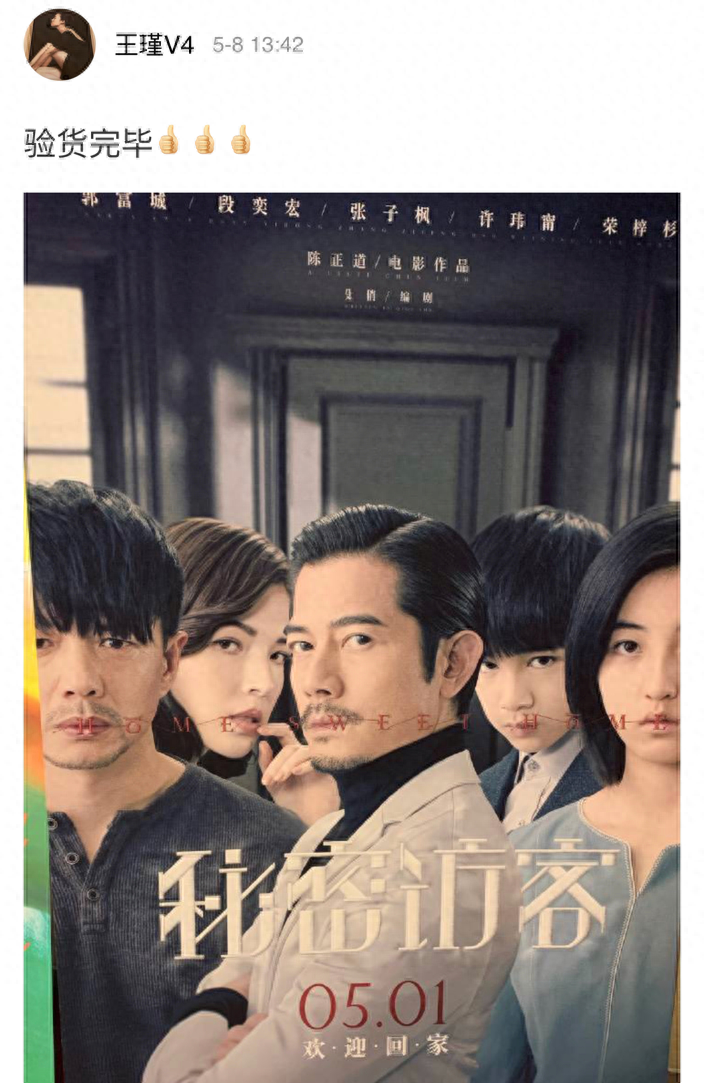 5月1日,段奕宏主演的电影《秘密访客》上映,身为“贤内助”的王瑾仍旧卖力为老公宣传,在社交平台发文“验货完毕”,并且附上大拇指点赞,语言简洁,但是爱意满满。能有这样一位娇妻在背后默默的守护和支持,想必段奕宏内心非常满足。
