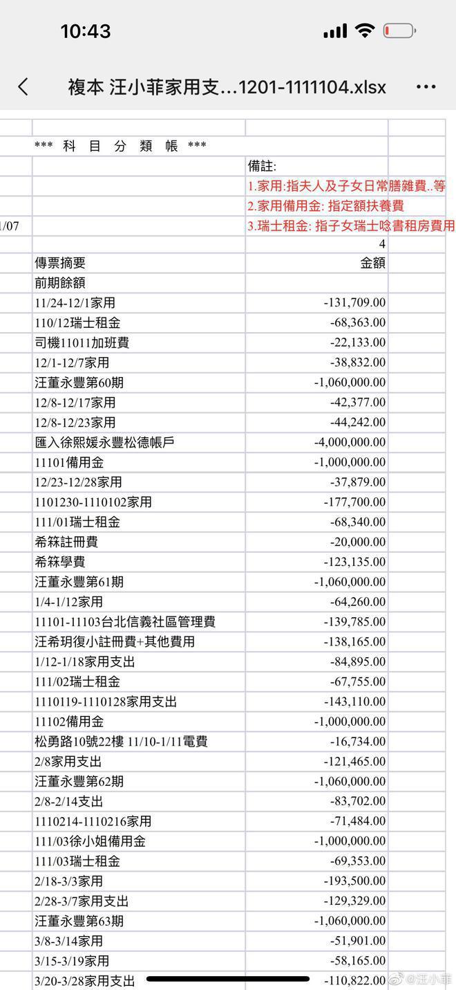 汪小菲支出流水