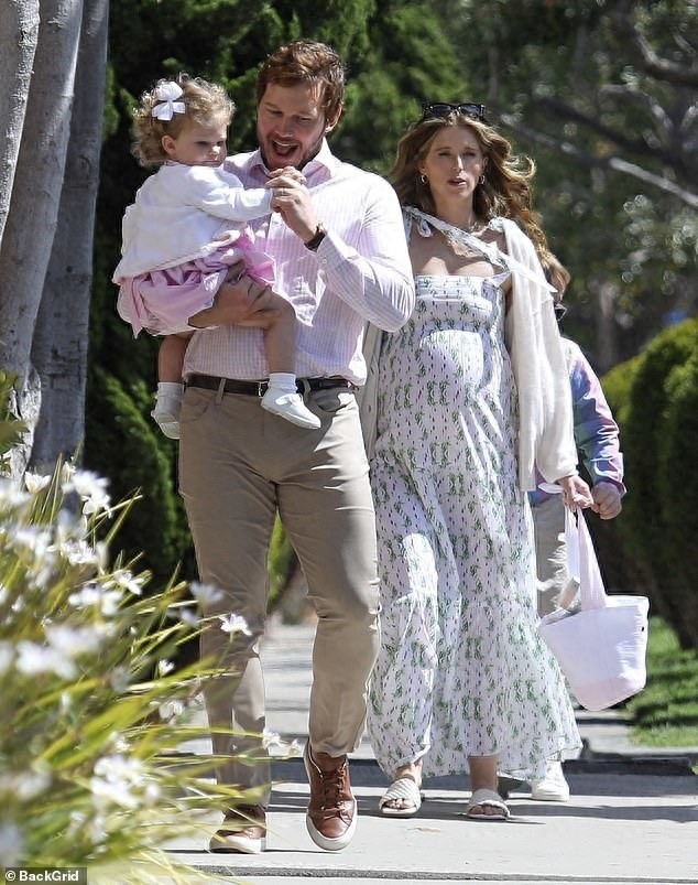 当地时间4月17日,克里斯·帕拉特出现在加利福尼亚州洛杉矶的圣莫尼卡街头,准备带着怀孕中的妻子凯瑟琳·施瓦辛格和一儿一女,去教堂参加复活节礼拜活动。