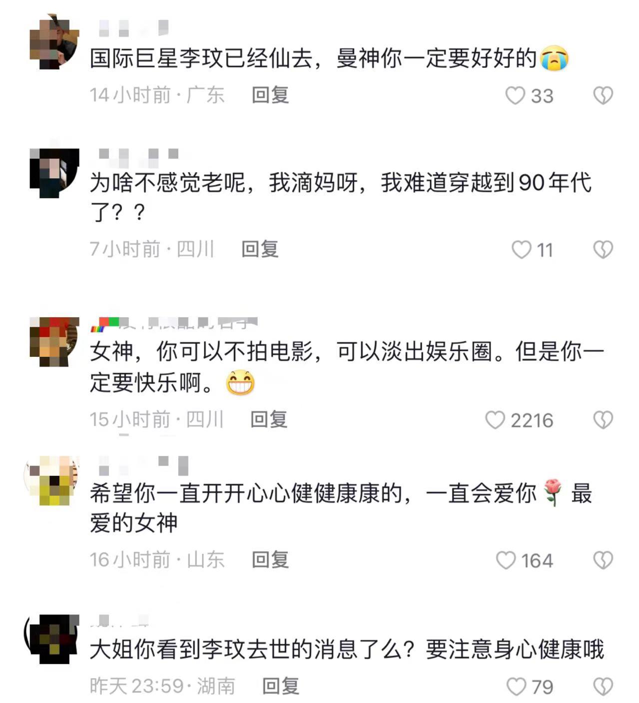 近日李玟的离世令很多人感到震惊,张曼玉突然更新社交账号,让许多网友忍不住担忧地发文,希望张曼玉一定要健康快乐,即便不拍电影,淡出娱乐圈也没关系。