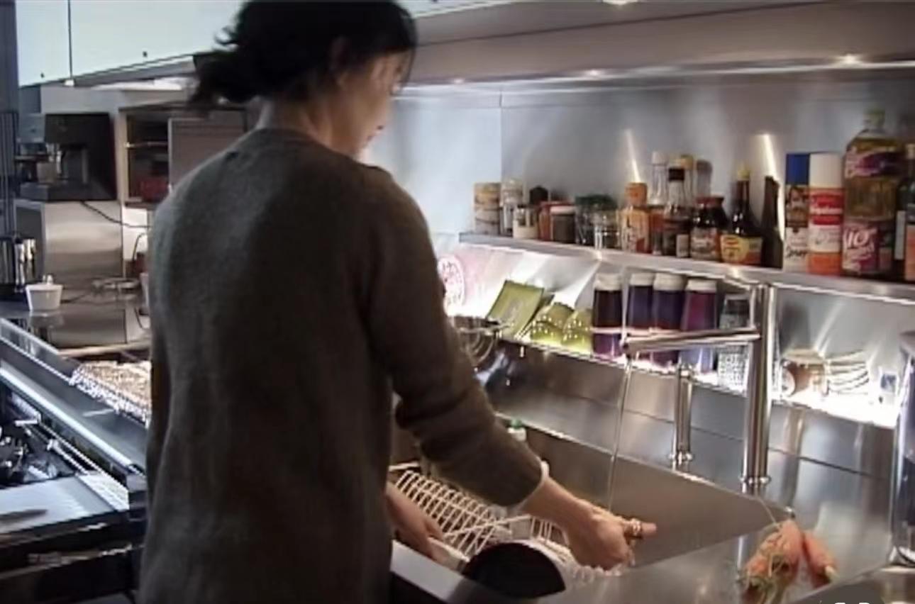 只见她一会儿拿着抹布在水池里清洗煮锅,一会儿又拿起刀熟练地削胡萝卜皮,每一个动作都非常熟练,显然她经常在家烹饪美食。