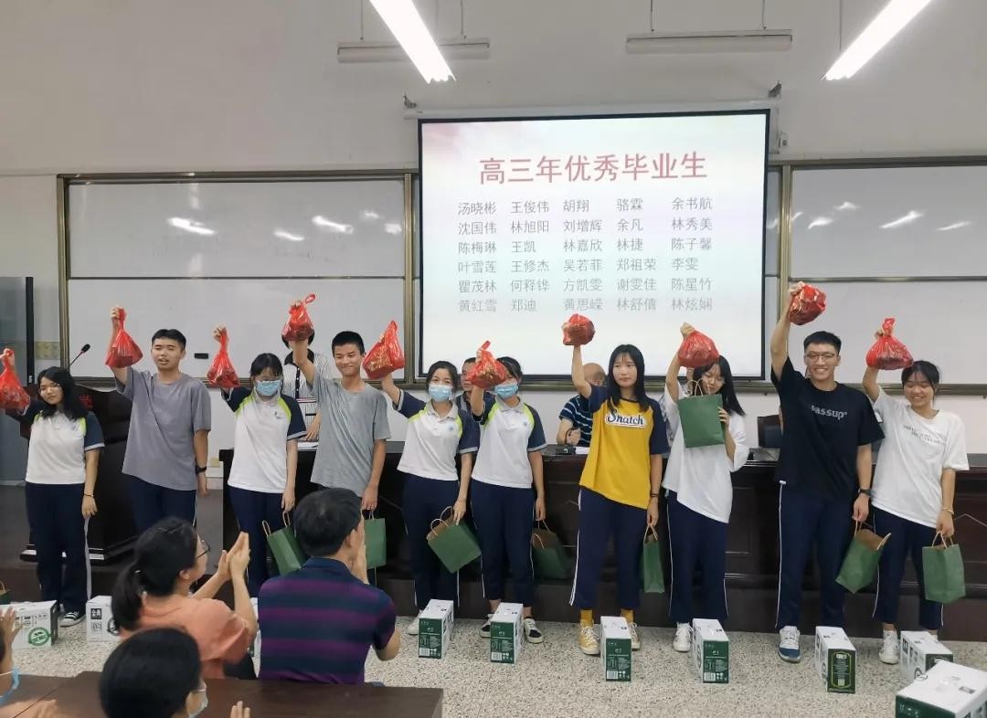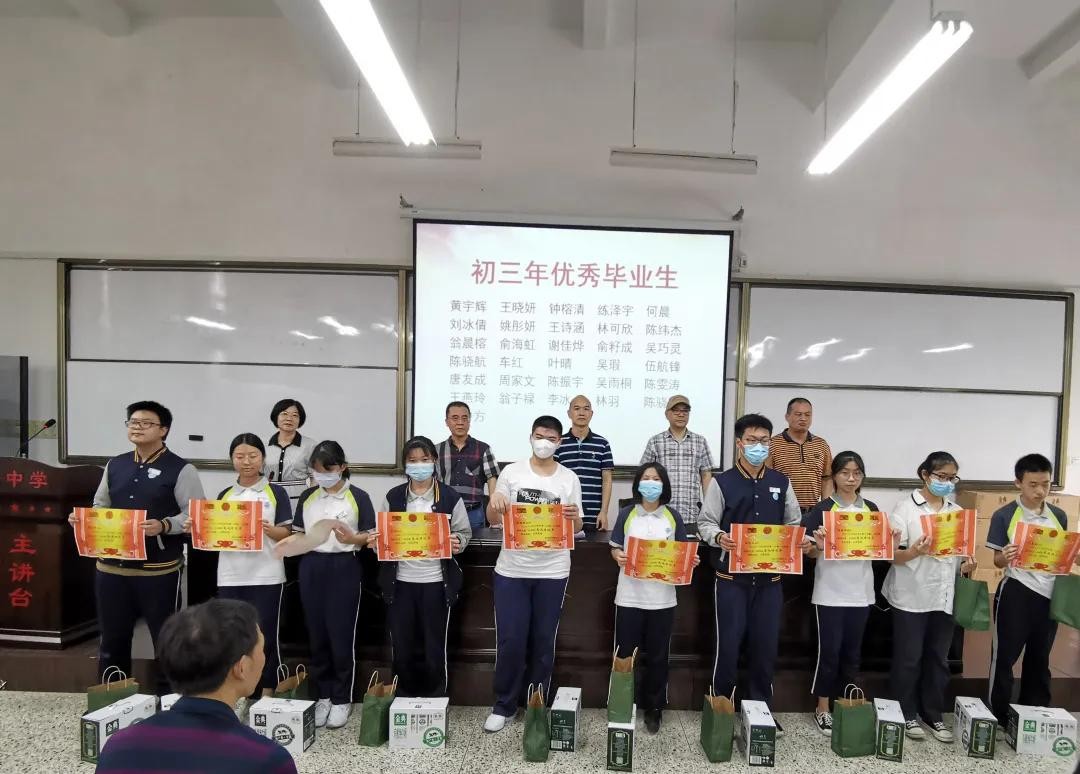 郑永斌书记宣布2020届优秀学生名单,王命捷校长等校级领导亲自为学子们颁发荣誉证书,并送上意为“高中(粽)”的粽子和强壮身体的牛奶。这沉甸甸的荣誉和奖品既是对孩子们过往三年的肯定,也是对他们任重道远的期许。