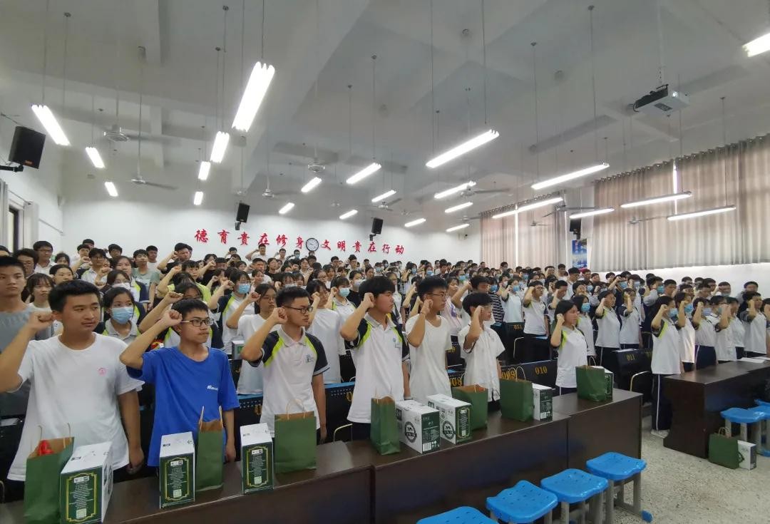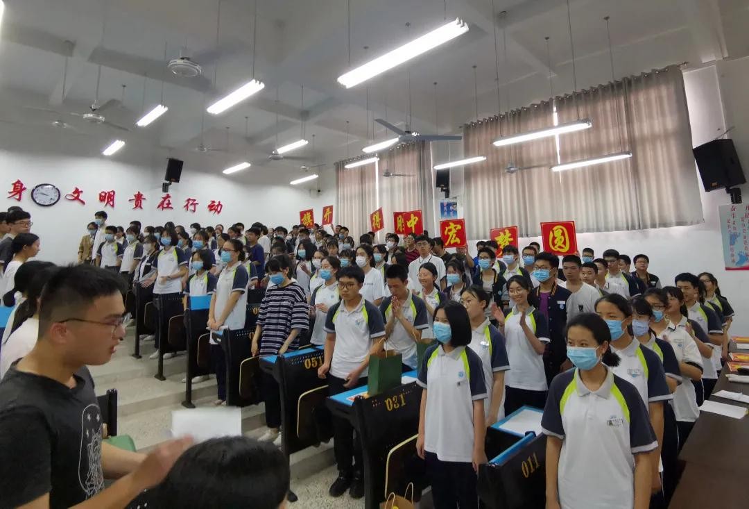 “百舸争流,以苦做舟……”,全体同学在高三年何厚琪同学带领下集体宣誓,将大会推向高潮。震天的口号、激昂的誓词,这一切都是两三学子内心深处的青春梦想,是对美好未来的期许和承诺。疫情挡不住梦想的飞翔,心中的渴望将与盛夏一同生长!2020,圆梦宏中,我们一定赢!