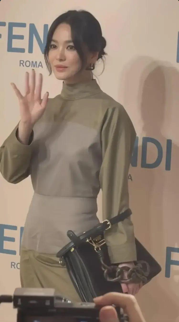 只见粉丝镜头下的宋慧乔暴露了真实颜值,是没有经过修图的,远远地看她个子好矮像一米六,还有点胖。