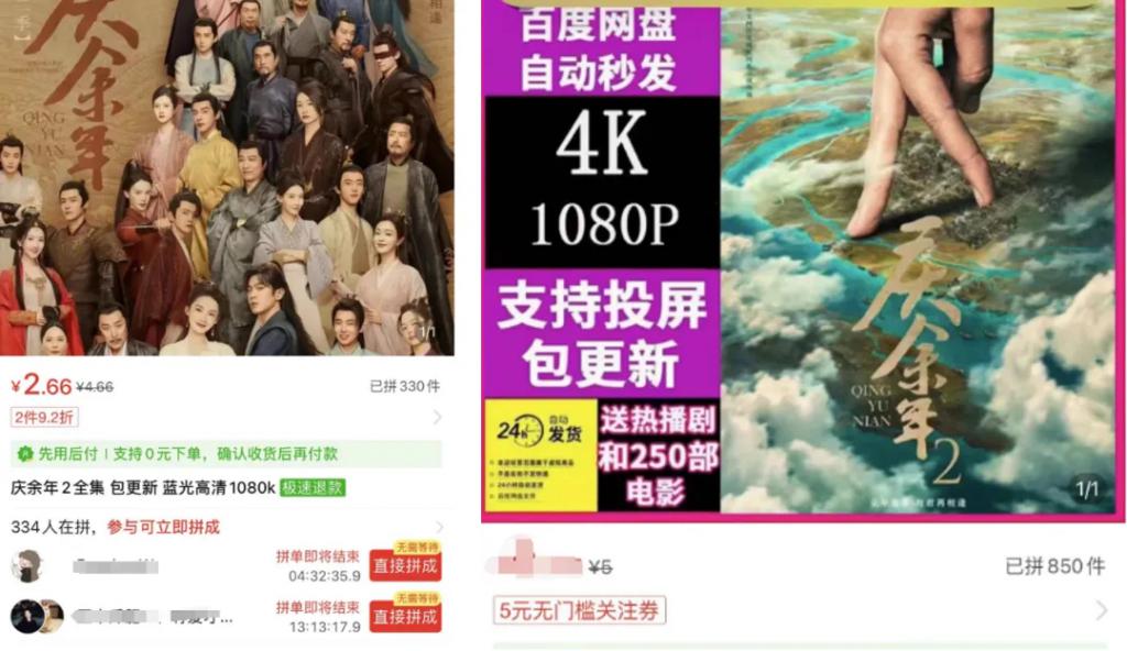 打开多个电商平台,上述热剧正在被以低至 1 元的价格出售。《每日经济新闻》记者暗访了解到,在 5 月 16 日,《庆余年 2》开播首日,仅 19 分钟,其 1 至 5 集的高清内容就被盗版商公开售卖。多位盗版商均告诉记者,他们的资源很快,近期所有热播剧会在平台更新当天 " 同步更新 " 到网盘中。"(找我买的人)很多,一天至少几十个人要呢。"