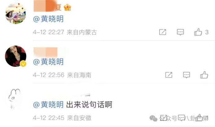 需求得不到满足,就说对方效率低下,态度傲慢,要维权,群起而攻之。现在有的粉丝甚至去求助黄晓明,真是黄金矿工都挖不出这么高纯度的 " 神金 "。再这么闹下去,不会要找陈伟霆吧。