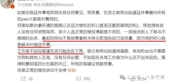 现在被嘲了,粉丝说自己都是被工作室逼的,并表示 " 维权不会停 "。太搞笑了,这些粉丝是签了合同去粉她的吗?维的什么权呢?