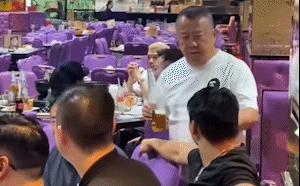 晚宴,曾志伟主动给小杨哥徒弟嘴哥倒酒。