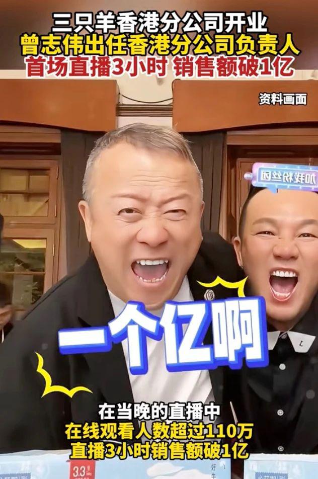 另一方面,直播带货也可以增加演员们的收入改善生活,毕竟,仅仅三个小时曾志伟与小杨哥就卖出一个亿的销售额,实为惊人。