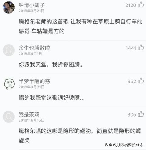 尝到搞怪的甜头之后,腾格尔便一发不可收拾,走上了“花式翻唱”之路。