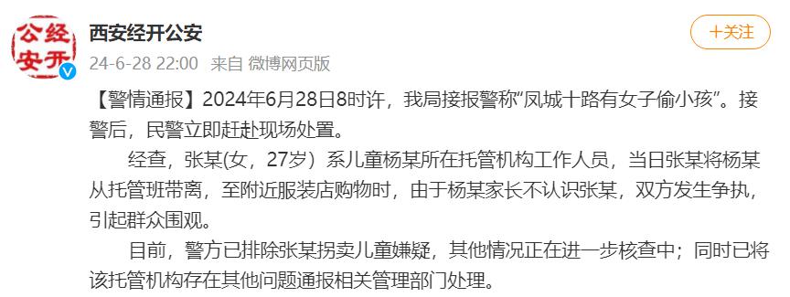 2024 年 6 月 28 日 8 时许,我局接报警称 " 凤城十路有女子偷小孩 "。接警后,民警立即赶赴现场处置。