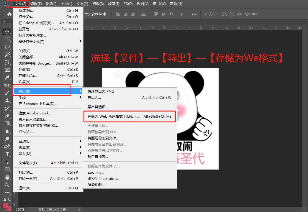 第五步,选择【文件】—【导出】—【存储为Web格式】,将储存格式改为【GIF】,这样我们的表情包就制作完成啦,是不是非常简单?