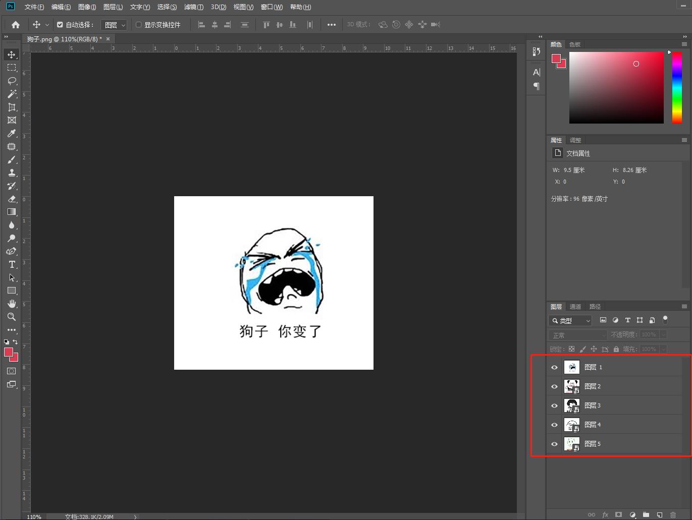 第一步,将准备好的表情包素材依次拖进Photoshop中,按照想要的顺序排列好。顺序错误的话,拖动图层改变图层顺序。