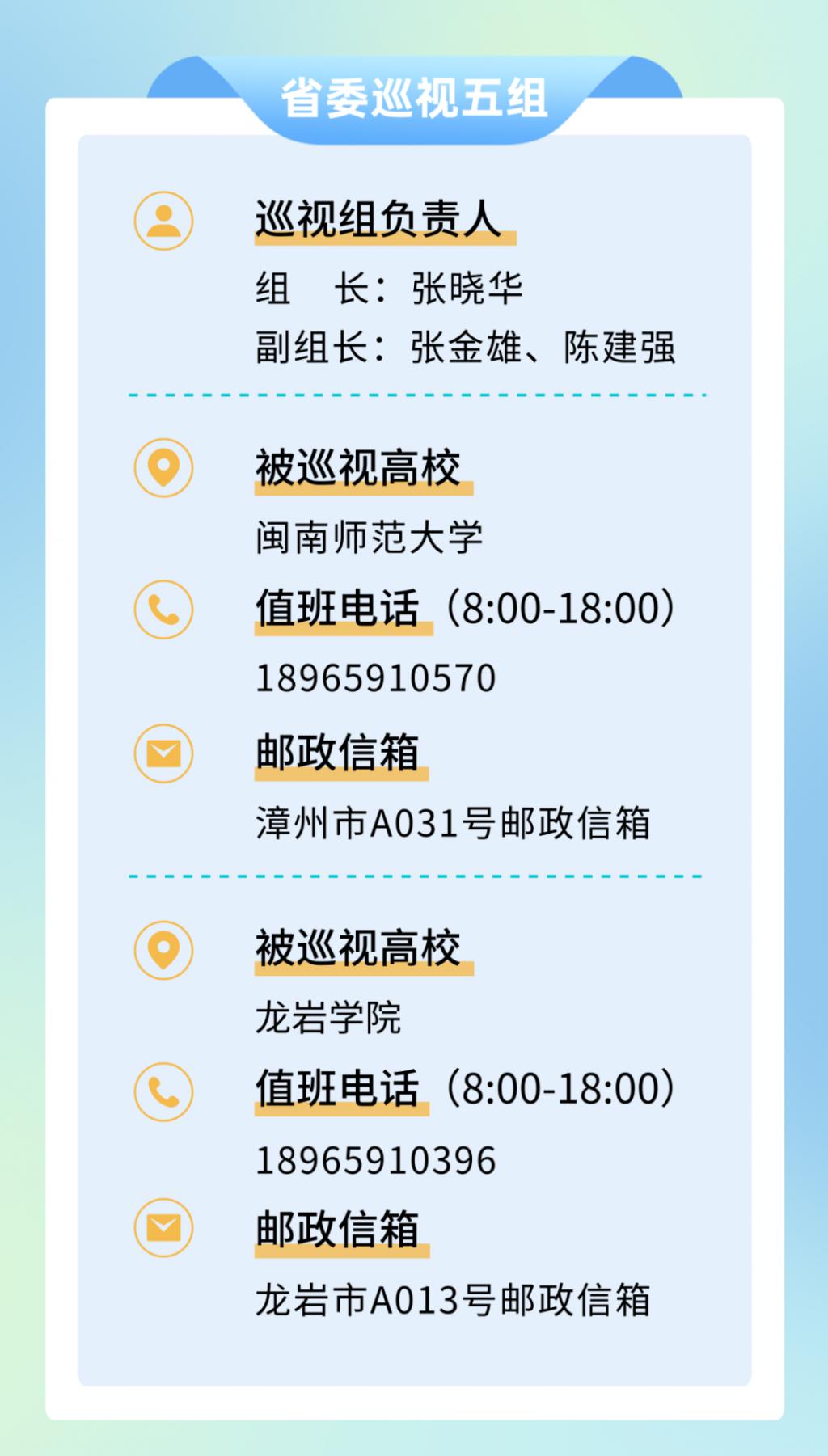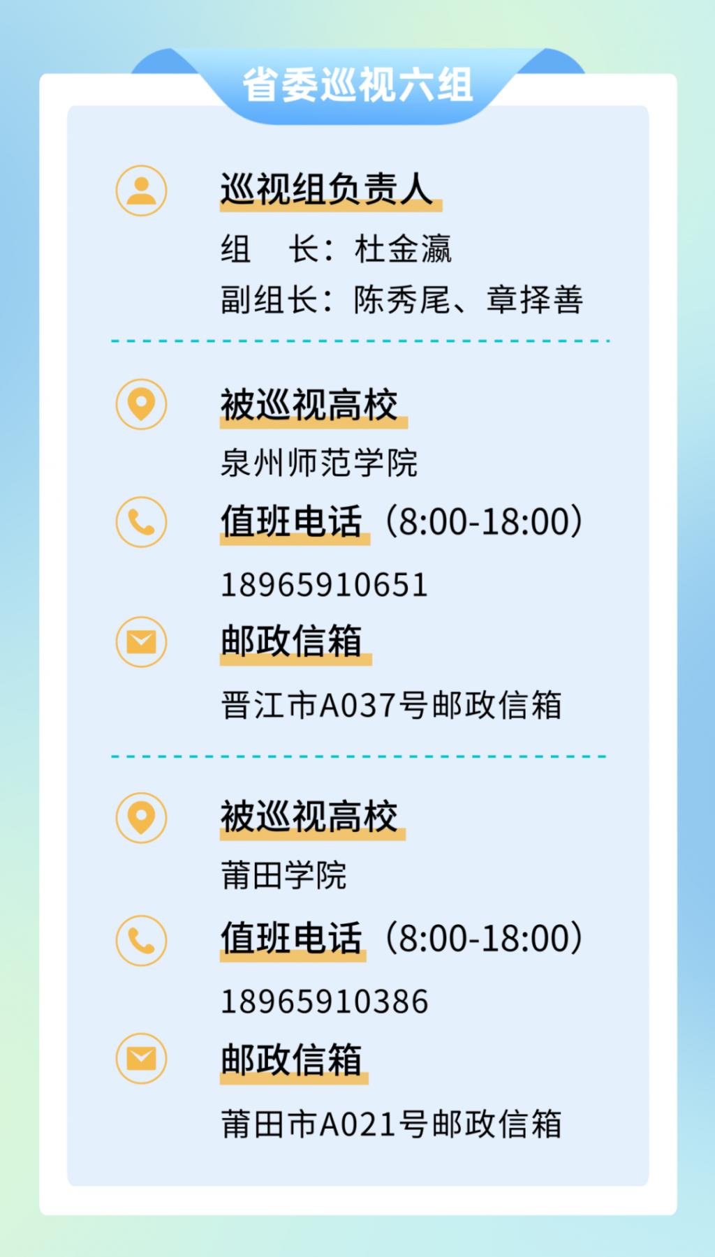 福建省委6个巡视组进驻12所高校开展巡视 联系方式公布