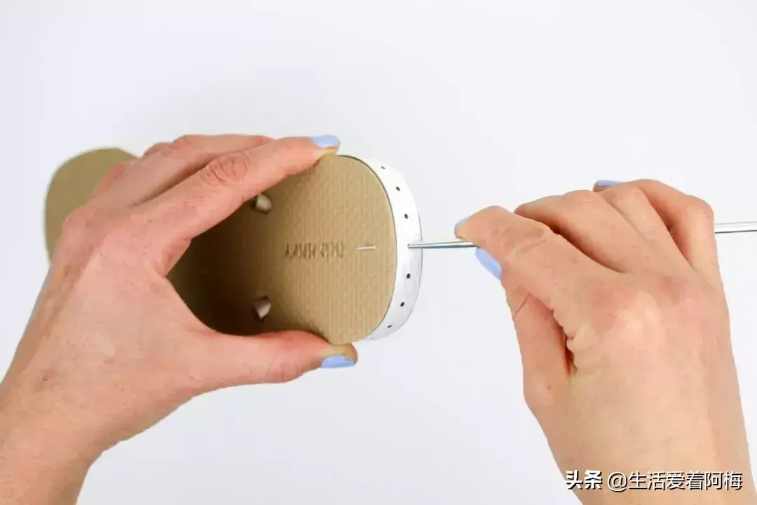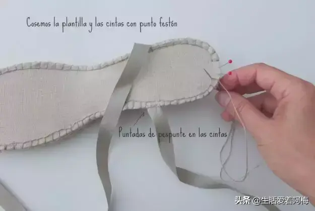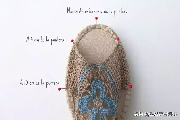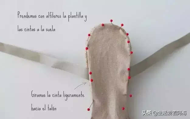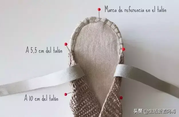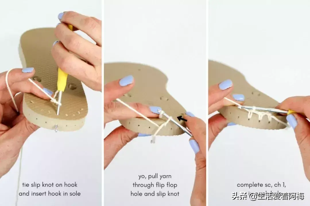 不管是平跟还是高跟,都先用锥子在鞋底戳一排小孔,穿过小孔钩一圈短针作为基底,然后再开始鞋面的钩织。