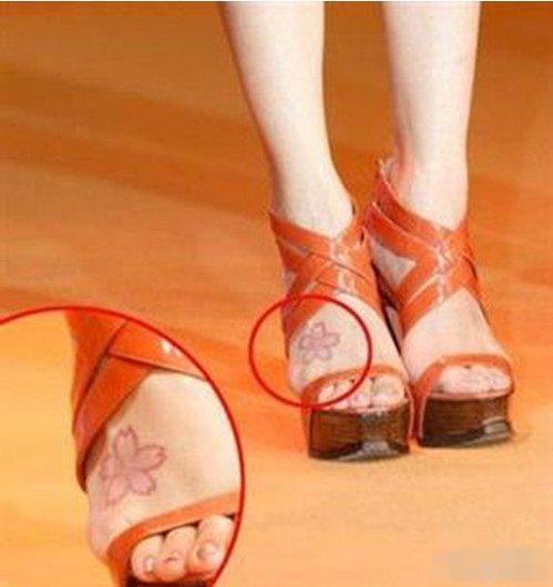 第三个,Angelababy脚背符号纹身,2016.3.2,baby出席典礼,被拍到脚背上有个类似花纹的图案,随后她跟记者解释,这个花纹是产品图案,表示不会影响工作。