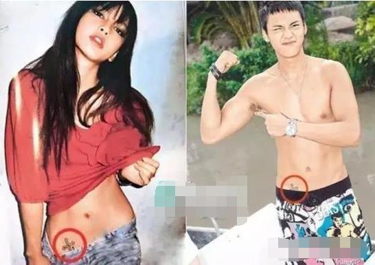 第一个,陈伟霆和杨颖,传绯闻的时候,被媒体发现两人同在右边耻骨有相同图案的十字架纹身,杨颖多次否认和陈伟霆有爱的纹身,尽管现在俩人分手,一个事业上升期,一个结婚生子,过去的不再提。