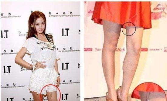 第二个,位于杨颖大腿内侧,貌似是为黄晓明而纹,AngelaBaby出席“模特大赛”入围名单公布记者会的时候,被抓拍到大腿内侧有纹身,疑似一行神秘字母,当记者现场追问的时候,杨颖笑而不语,闭口不答。