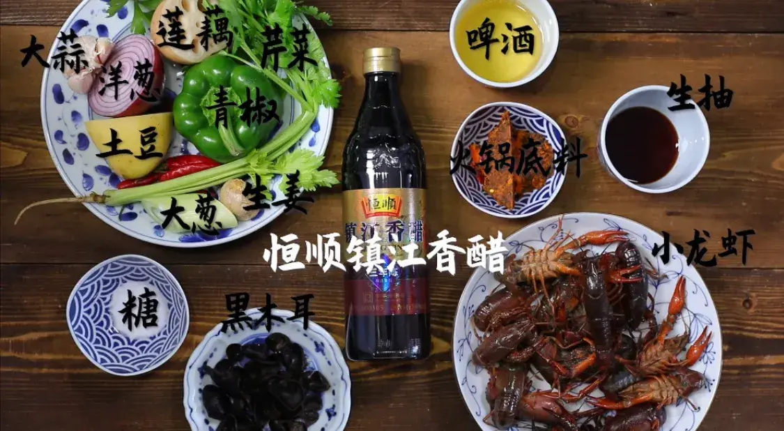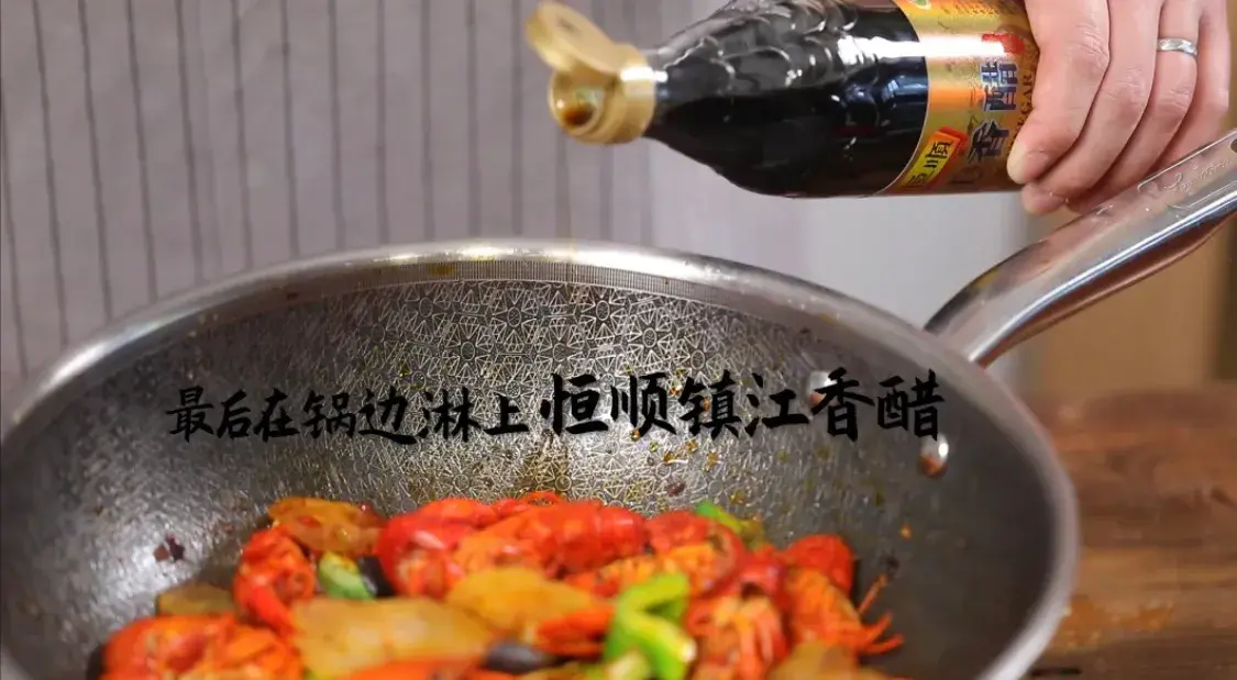 这次制作的这道少油版干锅小龙虾,最后的阶段特地选用了恒顺镇江香醋(三年陈)来进行锅边的浇淋增香。恒顺香醋作为国家地理标志保护产品和非物质文化遗产,传承百年工艺,经过自然发酵,醋味香醇浓郁,可以说是家中必备。